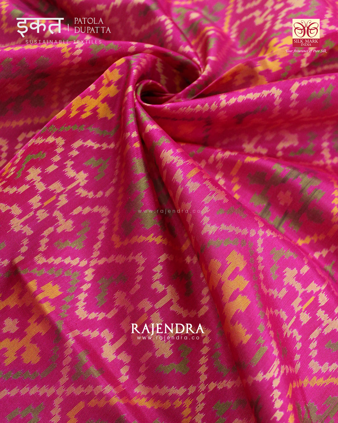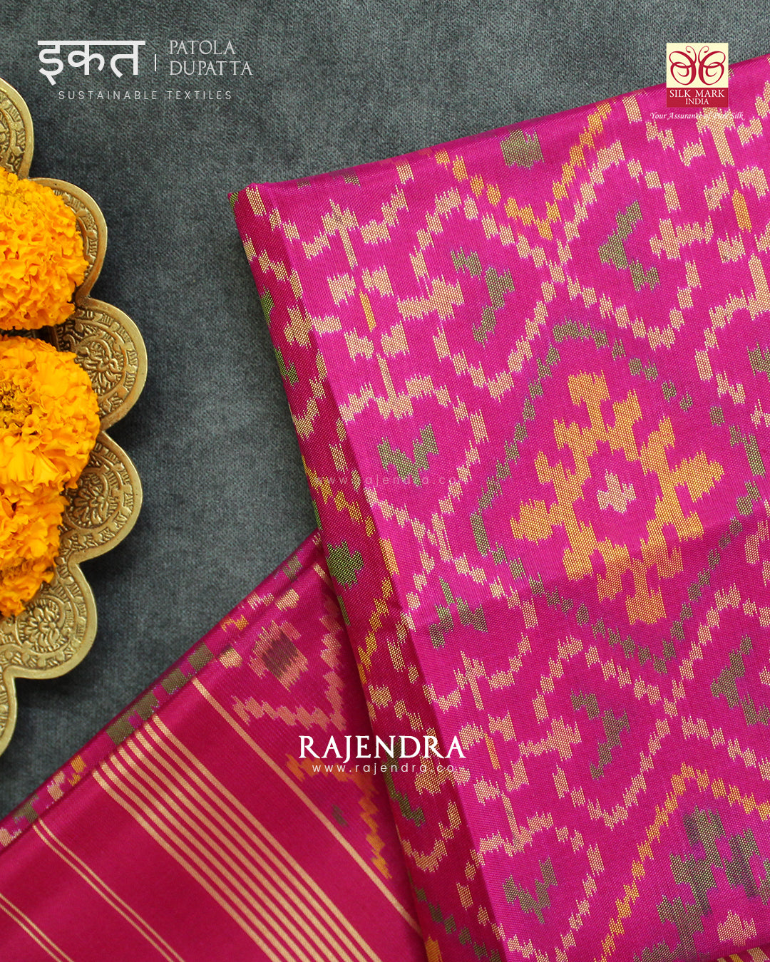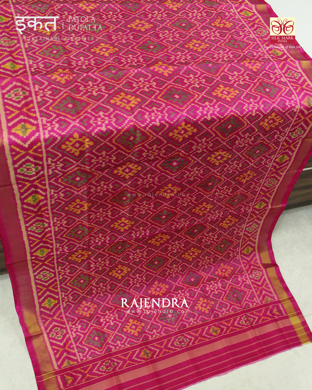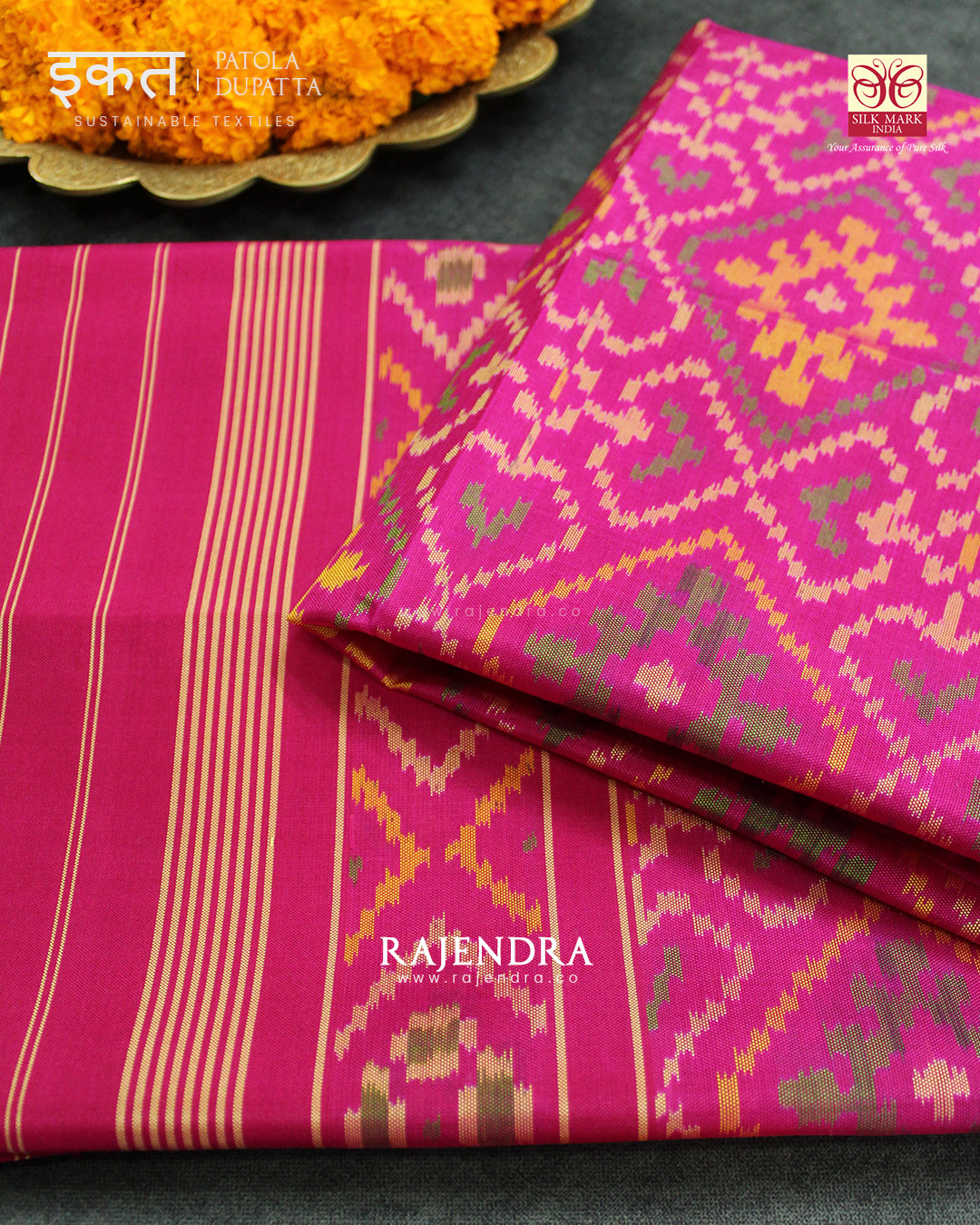Traditional Panchanda Bhat Pink Single Ikat Rajkot Patola Dupatta
