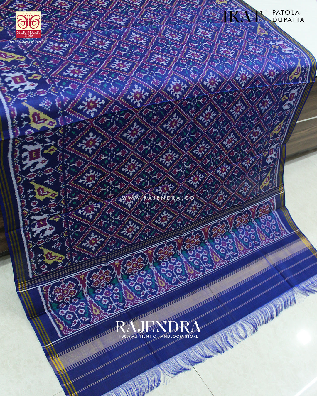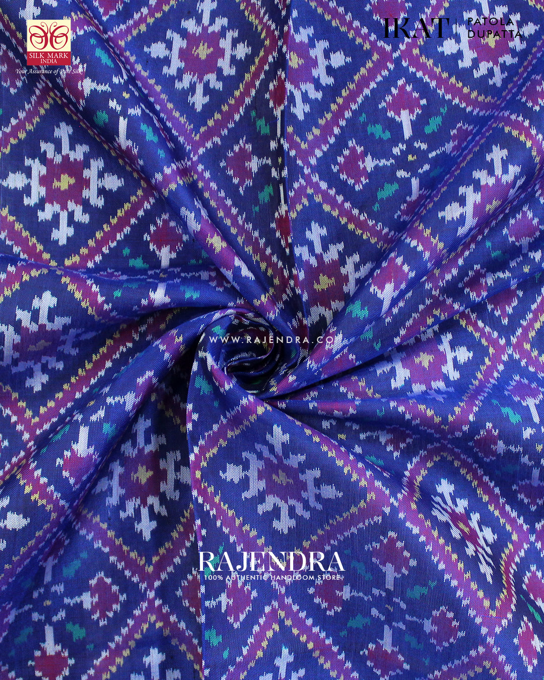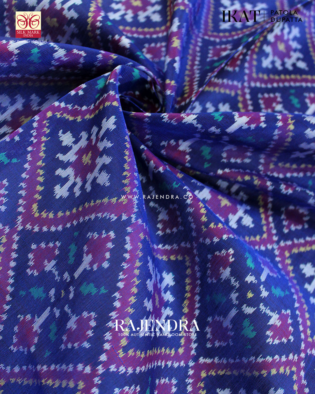 Traditional Panchanda Design Blue Ikat Rajkot Patola Dupatta