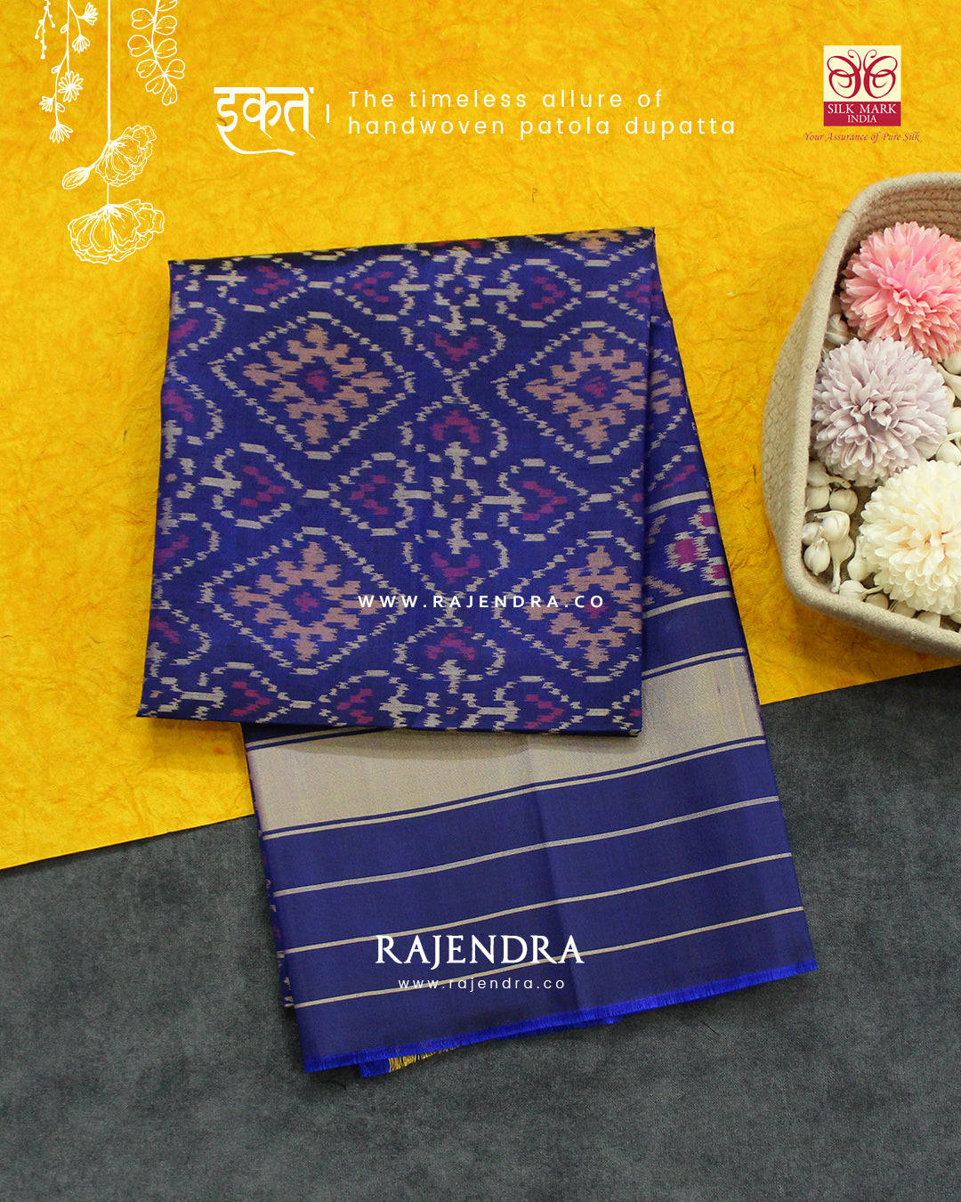 Traditional Panchanda Design Blue Single Ikat Rajkot Patola Dupatta
