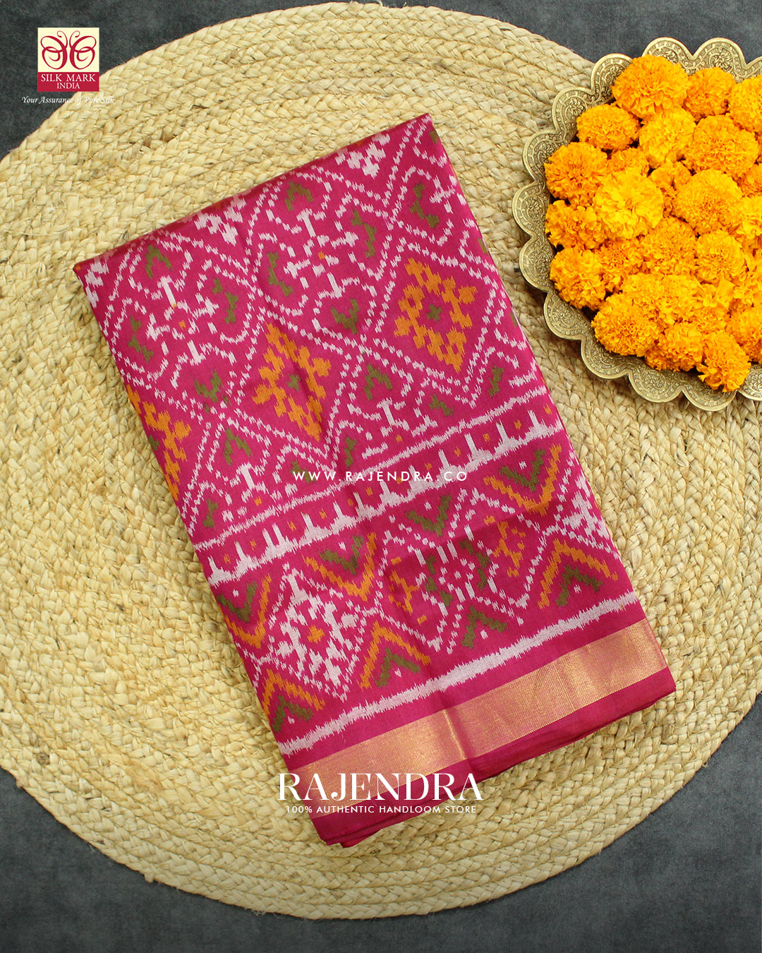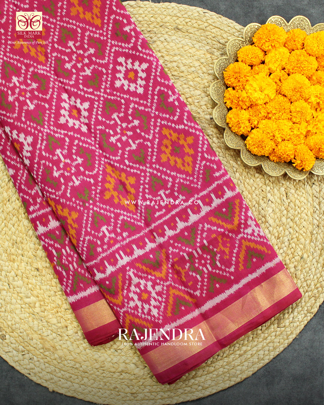 We are govt. approved silk mark certified store for heirloom rajkot patola saree. Authentic silk mark tag with all purchase and secure payment options. Whenever you buy silk make sure it has a silk mark label. The only symbol of purity of silk: the silk mark label. Rajendra Patola assures 100% Silk with Silk mark label.