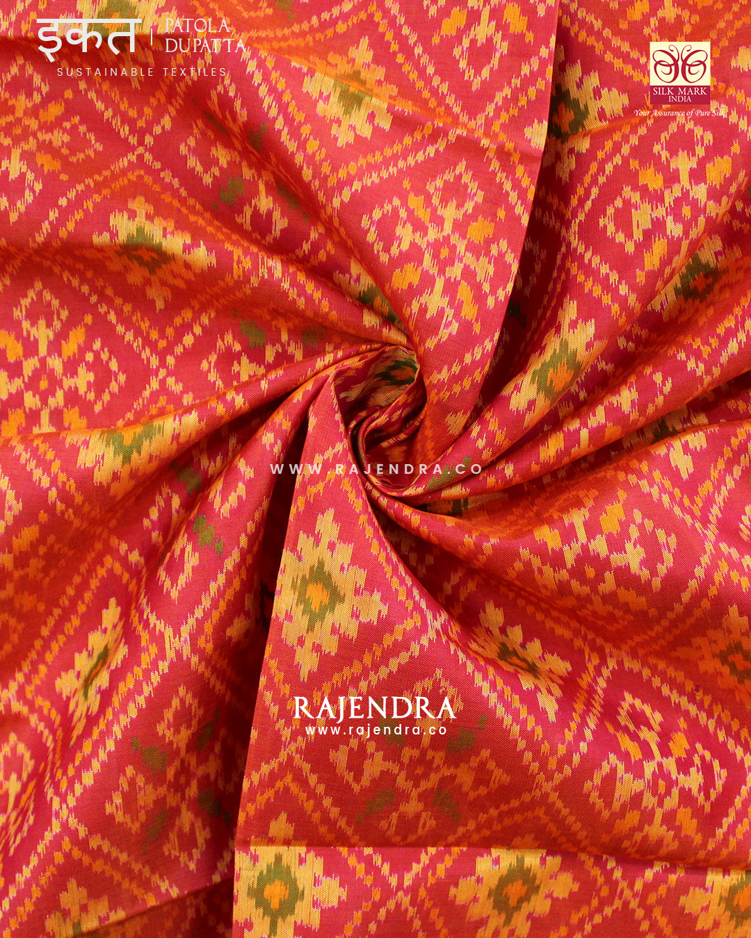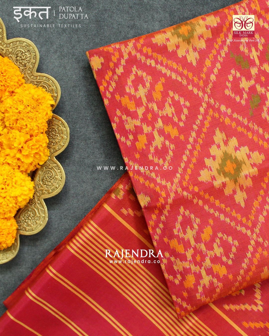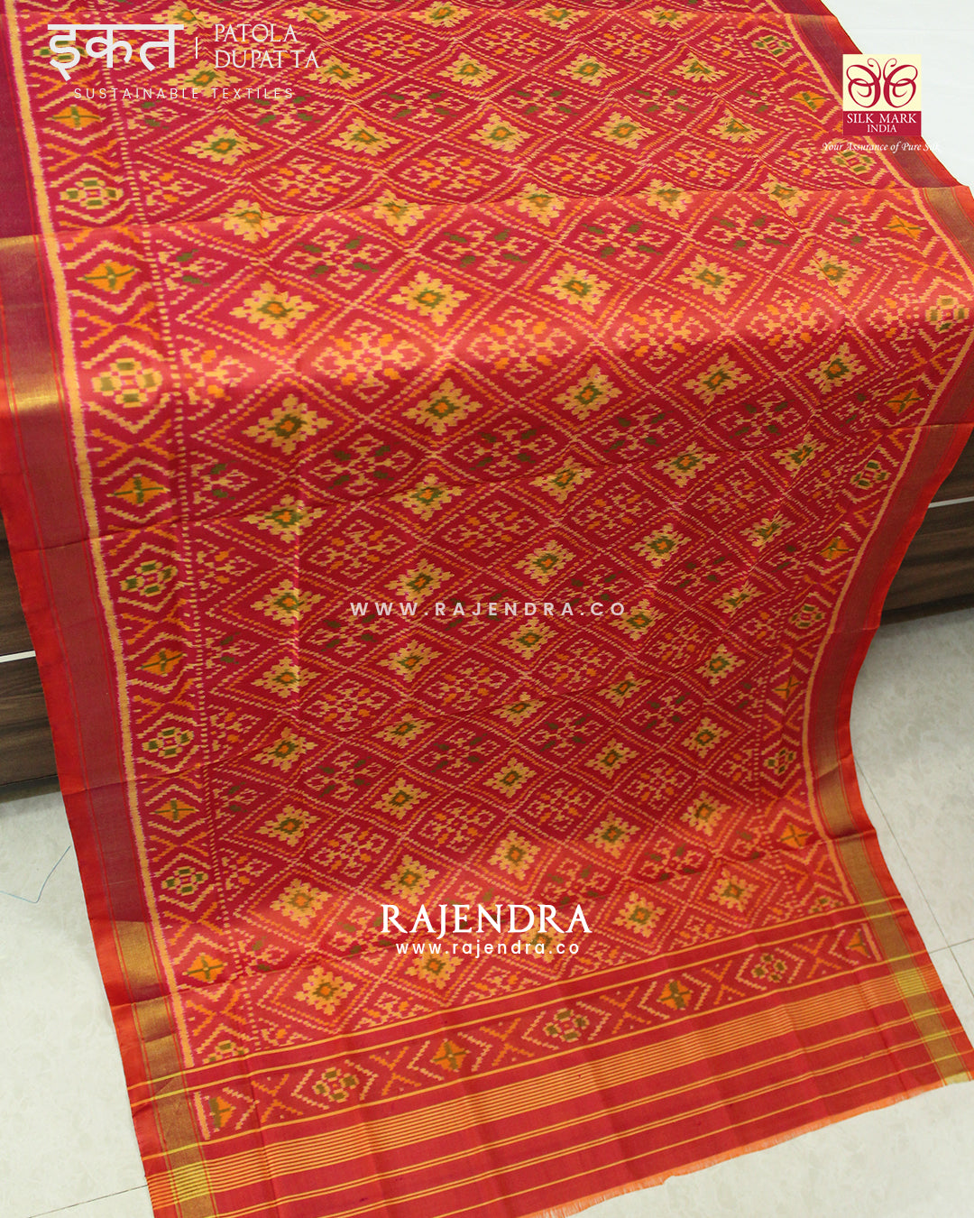 Traditional Panchanda Design Peach Single Ikat Rajkot Patola Dupatta