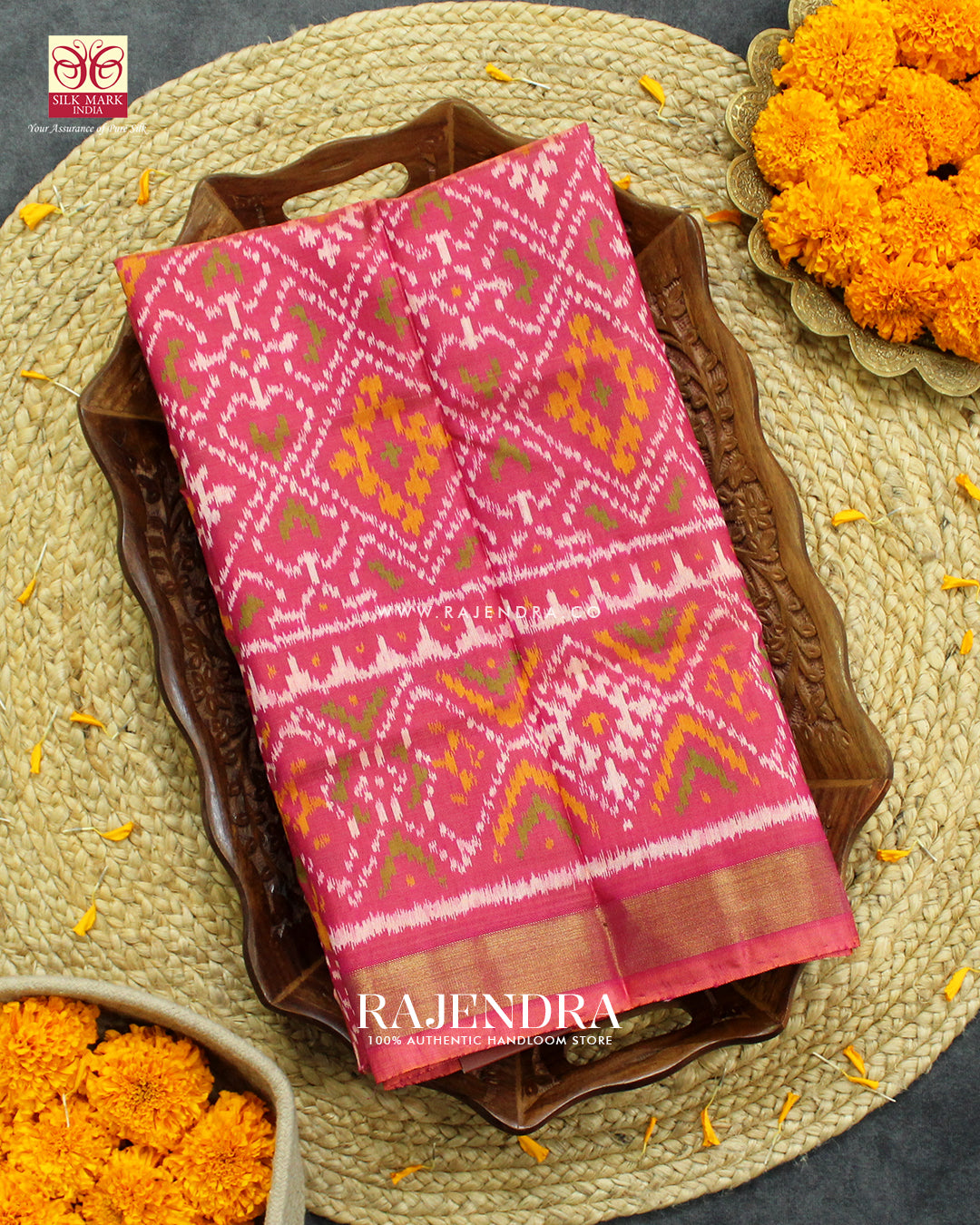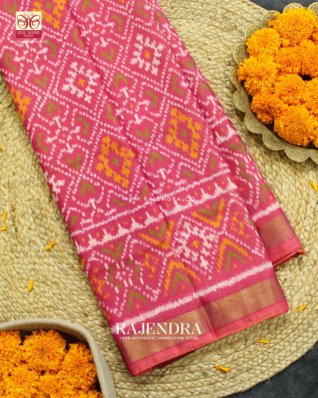Traditional Panchanda Design Pink Single Ikat Rajkot Patola Saree