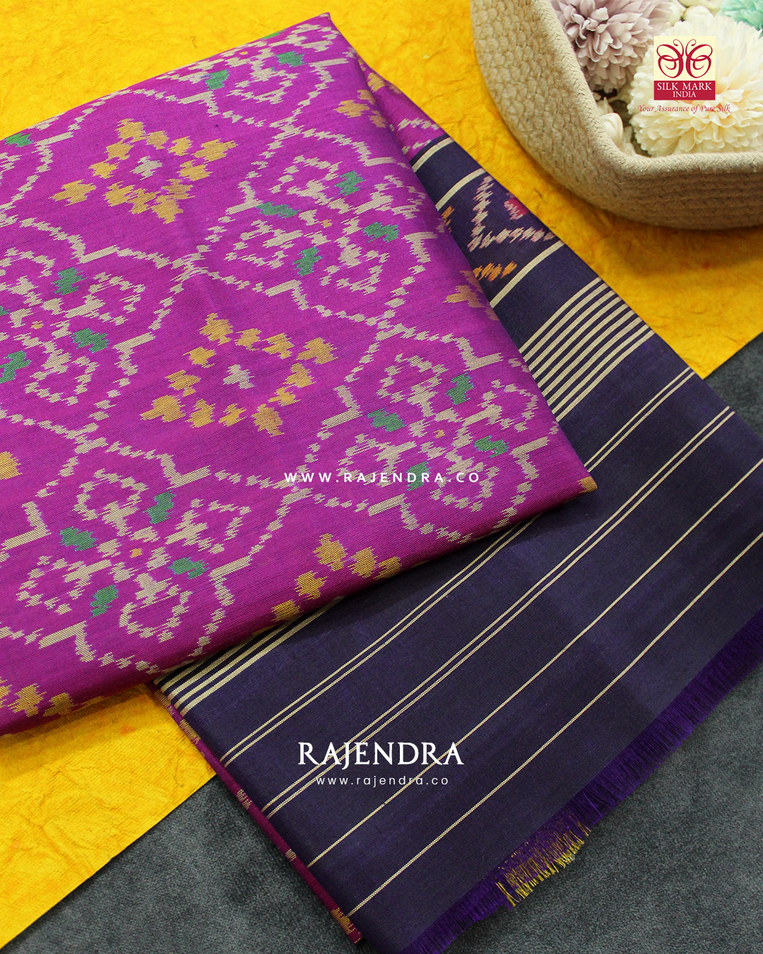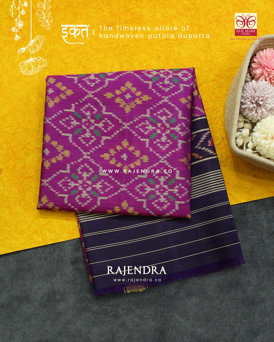 Traditional Panchanda Design Purple Pink Single Ikat Rajkot Patola Dupatta